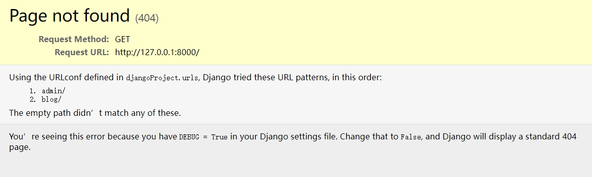 虽然显示了Page not found(404),但是我们看到了我们自己写的blog应用